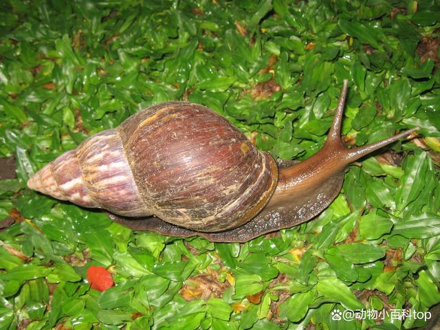 这种蜗牛的毒液具有很强的毒性。如果被它刺伤,轻则会导致剧烈疼痛并引发受伤部位的溃烂,而严重的刺伤可能导致心脏麻痹并产生致命风险。因此,当处理地理锥蜗牛时务必要小心,切勿让其伤害到自己。采集活体时更是需要格外注意,千万不能被其刺伤。 3、非洲大蜗牛(传播结核病/脑膜炎) 非洲大蜗牛是最致命的蜗牛之一,而且被广泛认为是一种全球性的农业害虫。它对中国的本土物种、生态环境以及社会经济等造成了重大影响和危害。当非洲大蜗牛栖息环境中缺乏水果或蔬菜时,它们会变得异常狂躁,并开始吞食各种其他“食物”,包括房屋内的油漆和泥灰。