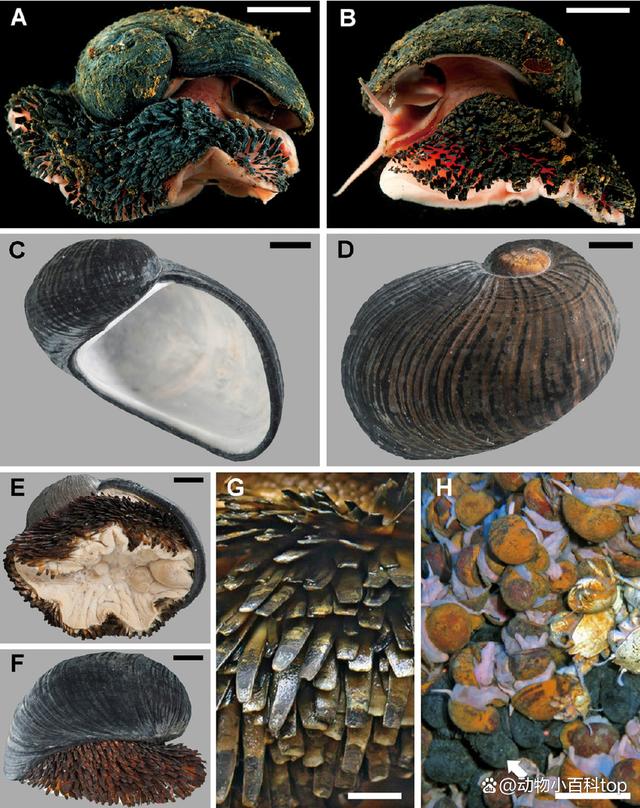 非洲大蜗牛能够对500多种植物造成危害,包括农作物、林木、果树、蔬菜和花卉等。该蜗牛品种还是多种人畜寄生虫和病原体的中间宿主,特别是可能传播结核病和嗜酸性脑膜炎等疾病。 4、鳞角腹足蜗牛(独特外壳) 鳞角腹足蜗牛是最令人恐惧的蜗牛之一,它们拥有独特的特征。这种蜗牛的壳主要由铁的硫化物构成,具有磁性。这些金属元素主要来自地底喷泉,蜗牛可以通过吸收喷泉中丰富的矿产资源,形成强大的钢甲外壳。这坚硬的外壳能够有效地抵御天敌的攻击。
