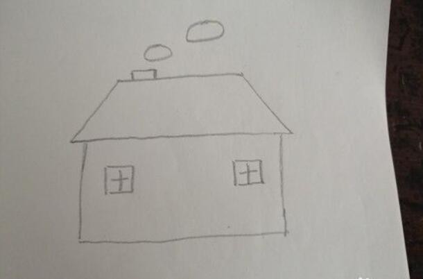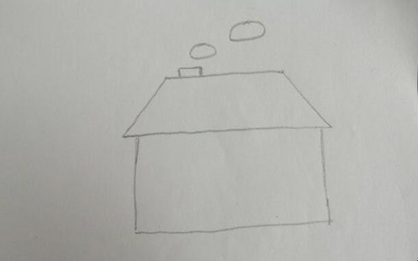 3、画好后来画上位于房顶的烟囱以及从上面漂出的一团团烟雾。