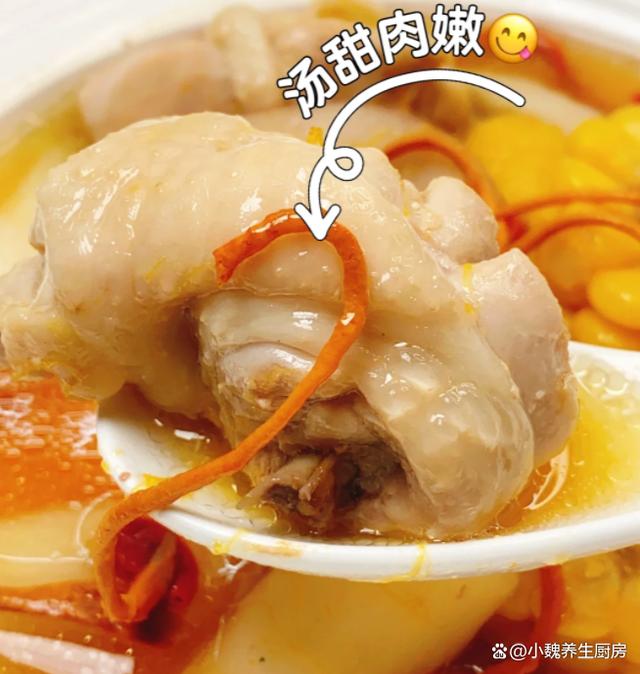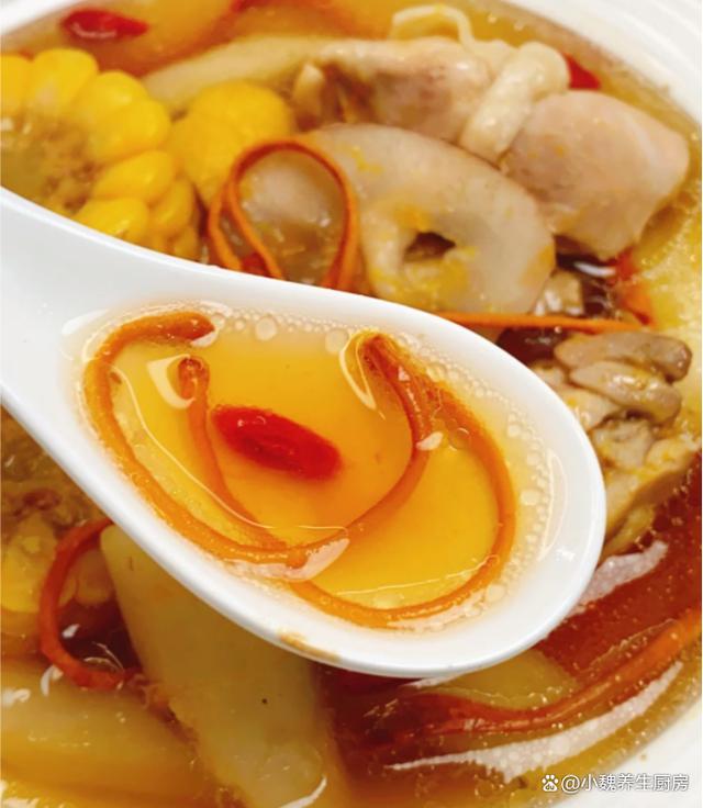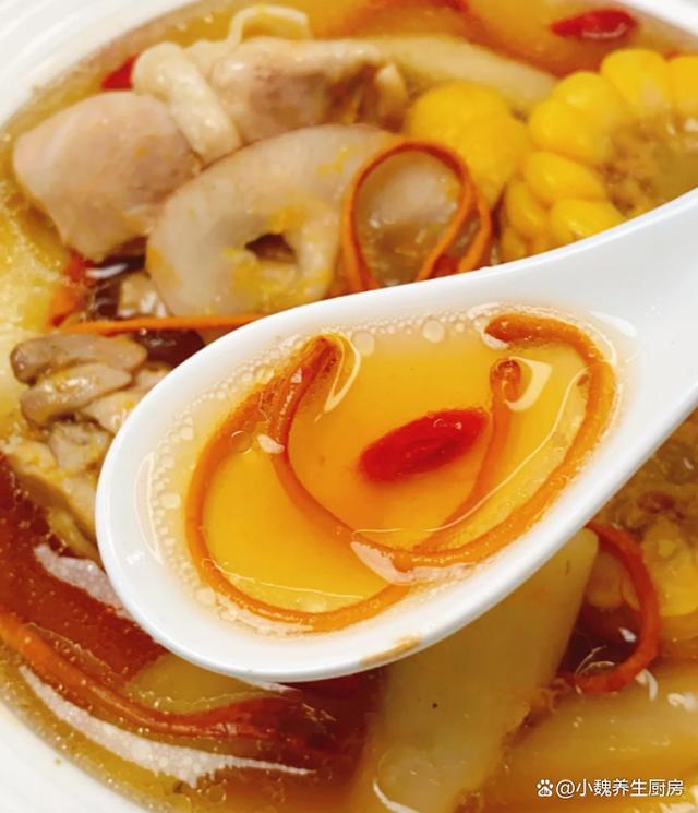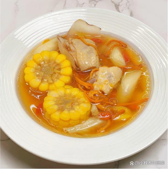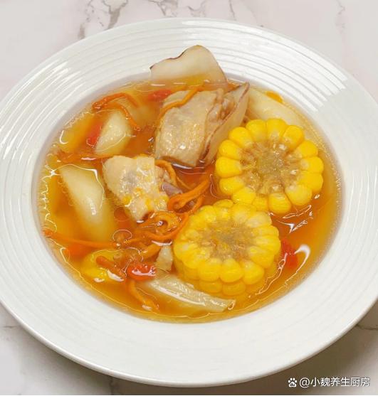 时间过得太快了,十月份已经来到中旬,秋意更加浓郁,一阵阵秋风吹掉落叶,外面都下着小雨,这个时候身体特别虚汗,气色会越来越差,抵抗力很差。秋天的天气异常,早晚非常大,让人身体特别虚寒,气色越来越差,我们可以多吃一些木耳,猪肝,菠菜,这些食材的铁元素含量高,具有造血补血的功效,让气色越来越好。今天准备用虫草花,鸡肉,玉米和山药来煲汤,汤品特别鲜美滋补,温补效果很不错,别不懂吃。秋季的“补血汤”找到了,10月多喝这汤,补血补气,脸色更加红润。  【虫草花玉米山药炖鸡汤的正确做法】 准备一些食材:挑选一根新鲜玉米(玉米是一种常见的食材,颗粒分明,色泽金黄,既可以做成主食,秋冬用来炖汤也合适),半根铁棍山药(山药又叫淮山药,里面为白色,口感非常脆甜,营养价值特别丰富,可以搭配各种肉类一起煲汤),海底椰12克左右,几个板栗,冷水少许,半只新鲜土鸡(个人建议用活鸡现吃,用来炖汤更加鲜美),生姜和大葱少许,冷水和温水少许,虫草花15克,料酒少许,食盐少许,胡椒粉半勺,其他。 具体制作顺序: (www.Ws46.com) 第一步:提前准备好鸡肉,虫草花,玉米和山药等食材,先把山药都去皮洗净,然后切成一些片状,放在一边备用。第二步:把虫草花用温水泡发,去掉根部一部分,新鲜玉米剥掉叶片,用盐水浸泡出脏东西,切成若干小块,备用。 第三步:将土鸡提前宰杀处理好,去掉内脏和头尾,将里面清洗干净,用面粉揉搓,用冷水浸泡,冲洗掉里面的血水,备用。第四步:把板栗提前去壳,去掉表面一层物质,洗净备用,海底椰也要从新干净,生姜切成一些片状,备用。 第五步:准备好煲汤的容器,锅中放入玉米,板栗,海底椰,玉米和山药等食材,放入鸡肉一起炖煮,鸡肉不需要焯水。 第六步:调到大火将其煮沸,撇去一层浮沫,调到小火慢炖一个多小时左右,让鸡肉煮食软烂,汤品色泽开始变化,证明食材都熟透了。第七步:出锅前调入食盐调味,加上胡椒粉半勺,快速用汤勺搅动,丢入一些枸杞子,焖煮一小会儿,这道虫草花玉米山药炖鸡汤就烹饪完成了。 虫草花玉米山药炖鸡汤的食用禁忌:首先,对于体质偏热或有上火症状的人群,如常感口干舌燥、便秘或皮肤易生疮疖者,应谨慎食用。虫草花虽为温补佳品,但过量摄入可能加剧体内热气,不利于症状缓解。同样,山药虽健脾益肾,但其性平偏温,亦需适量。其次,孕妇在食用前应咨询专业医生意见。虽然虫草花、玉米及山药均富含营养,对孕妇及胎儿有诸多益处,但个人体质差异可能导致不同的反应,安全起见,建议根据个人情况调整食谱。最后,值得注意的是,虫草花玉米山药炖鸡汤虽好,但不宜作为主食长期大量食用,应保持饮食多样化,合理搭配各类食材,以确保营养均衡,避免营养过剩或偏颇。 总之,在享受虫草花玉米山药炖鸡汤的美味时,我们应根据自身体质和健康状况,适量食用,并留意上述食用禁忌,让这道汤品真正成为滋养身心的佳品。 虫草花玉米山药炖鸡汤是一款补血补气的汤品,女性朋友要多喝它,鸡肉搭配几种食材一起炖,汤品特别鲜美,滋补养人,补血补气,调理我们的身体,顺利度过秋天,迎接冬天的来临。各位网友们,你们是否喝过这款虫草花玉米山药炖鸡汤呢?(上述的图片均来自网络)