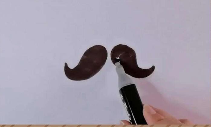 2、用弧线画出另外一边胡子的轮廓。