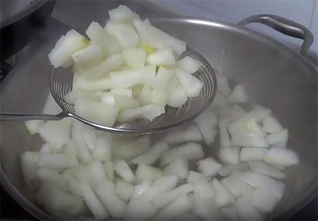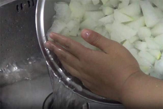 5.捞出之后,用清水冲洗,一般洗三次,洗的水不浑浊就可以了。
