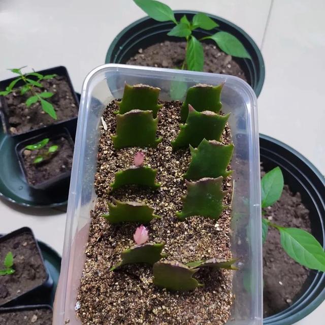 长寿花,顾名思义,寓意着长寿与健康,是许多家庭喜爱的花卉之一。它的花朵密集,色彩丰富,有红色、粉色、白色等多种选择,而且花期极长,能从冬末一直开到春末,甚至更久。长寿花的叶片肥厚,储存了大量的水分和养分,这使得它非常耐旱,扦插成活率极高。 扦插方法:选择健康无病虫害的枝条,剪成5-8厘米长的小段,保留2-3片叶子。将枝条下部的叶片摘掉,放在阴凉通风处晾干伤口。准备疏松透气的土壤,如蛭石、珍珠岩或沙土,将枝条插入土中约2厘米深,保持土壤微湿。放置在散射光处,避免直射阳光,大约2-3周后就能生根。 蟹爪兰