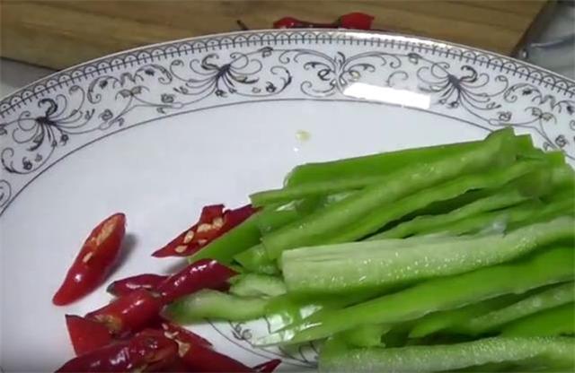 1.朋友们,大家好,今天我们来做一道酸辣藕丁,做好之后脆嫩爽口,酸辣好吃。准备一个去皮洗净的藕,一根青椒,少量的小米辣、葱姜,少量的郫县豆瓣酱,先把青椒切丝,小米辣切段。
