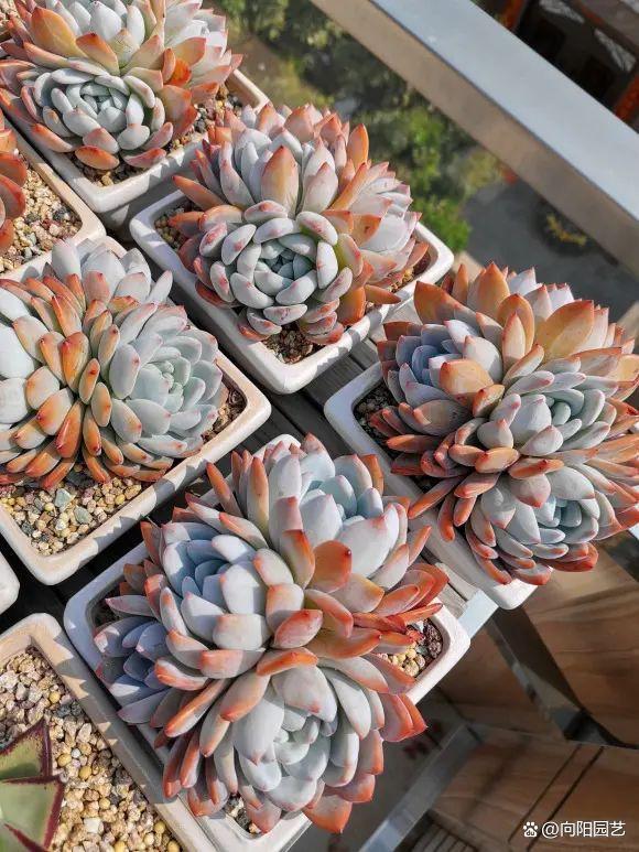 深秋季节完全不用担心烈日了,该晒太阳还是要晒太阳的,露天环境下的多肉去掉遮阳网,同时进行浇水,让多肉植物更快地恢复生长的活性,根系的活性越高,多肉的叶片越饱满,状态上越好,颜色越漂亮。