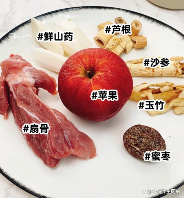 已经迈入十月份,是处于深秋的阶段,天气一天更比一天高,气温太低让人精气神差,胃口非常差,晚上还容易失眠,气色会很差,影响到正常的生活。很多人出现失眠,主要是生活压力大,加上不规律的作息,饮食搭配不合理,导致身体负担加重,出现睡眠质量差的情况。今天准备给家里人制作一款汤品——苹果芦根沙参猪骨汤,苹果和它炖一锅,等于天然“安神汤”,营养全面,别不懂吃。睡眠不好的人,不要慌!平常要多喝这汤,补脑安神,早食早受益。  【苹果芦根沙参猪骨汤的详细步骤】 准备一些食材:选购200克新鲜苹果(苹果是百果之王,是秋冬最受欢迎的水果,果肉非常脆甜多汁,富含果酸,维生素和氨基酸成分,纤维成分含量高,可以做成许多美食,对大脑很有益处),芦根20克左右,新鲜淮山药一根,沙参12克左右,几个蜜枣,新鲜猪扇骨500克左右(猪扇骨是猪骨的种类之一,价格比排骨要便宜,炖汤是不错的选择,汤品鲜美滋补,好处多多),纯净水和温水少许,几勺料酒,食盐少许,其他。 详细制作过程: 第一步:提前准备好苹果,芦根,沙参和猪骨等食材,把新鲜山药外皮洗净,去皮后切成片状,也可以直接用干山药片,放在一边备用。 (www.ws46.coM) 第二步:把芦根和沙参洗干净,玉竹也要清洗干净,生姜都切成薄片,香葱洗净打成小结,几个蜜枣都洗干净,备用。第三步:将猪扇骨都剁成块状,用流水冲洗几遍,用冷水浸泡出里面的血水,猪扇骨放入锅里,加上一些葱段和姜片,加上一丢丢料酒,这样可以达到去腥的目的,将猪骨去腥处理。第四步:苹果的外皮洗干净,去掉里面的果核,切成若干小块,准备好焯水好的猪骨和其他食材,开始烹饪这道苹果芦根沙参猪骨汤。 第五步:准备好汤锅或炖盅,里面放入猪骨块,沙参,芦根,苹果,山药和姜片,加上少许纯净水,为了保证汤品的鲜美。第六步:一定要控制好火候,小火慢炖,让食材的营养融入汤里,猪扇骨炖到熟透,加上一些食盐调味,还可以加上少许胡椒粉,把汤品搅拌均匀即可,这道苹果芦根沙参猪骨汤就烹饪完成了。 苹果芦根沙参猪骨汤额食用禁忌:首先,对于体质偏寒或脾胃虚寒的人群而言,此款汤品中的芦根与沙参虽具清热生津之效,但过量摄入可能会加重体内寒气,导致腹泻、腹痛等不适。因此,这类人群在食用时应适量为宜,或根据个人体质咨询专业医师意见,适当调整食材配比。 其次,孕妇在饮食上需格外谨慎。虽然苹果富含营养,沙参也有润肺止咳之功,但芦根性寒,且猪骨汤中可能含有较高的脂肪与胆固醇,不利于孕期健康管理。孕妇若欲品尝此汤,建议在医生或营养师的指导下进行,确保食材的新鲜与安全,并控制食用量。 苹果芦根沙参猪骨汤是一款安神的汤品,里面既包括苹果,还搭配一些药材和猪骨,简单炖一锅,营养价值高,补脑安神,对身体有很多益处。 各位网友们,你们是否学会这款苹果芦根沙参猪骨汤的烹饪技巧吗?(文中的配图均出自网络)