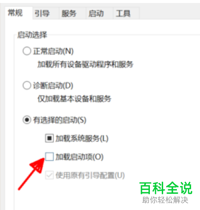 3. 第三步根据下图箭头所指,取消勾选【加载启动项】。