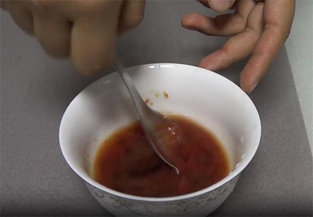 2.接着再取一个碗,加入一勺糖,一勺醋,一勺番茄酱,再来一勺素蚝油,最后加两勺水,然后搅拌均匀备用。