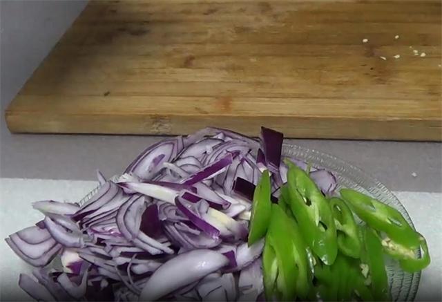 准备食材: 杏鲍菇、洋葱、青椒、食用油、葱花、酱油、素蚝油、盐、蒜末 具体做法: