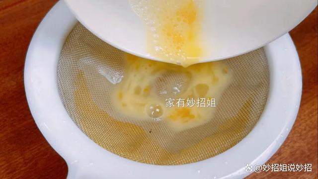 平常我们在吃蒸蛋的时候,还会发现鸡蛋羹中会有一些筋膜,这些筋膜无论怎么搅拌也是搅拌不开的。为了避免这些筋膜影响口感,你也可以用细网将蛋液过滤一下,这样做出来的水蒸蛋会更加细腻,没有蜂窝。