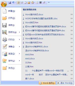 操作步骤: 1、单击“Office按钮”选择“Word选项”; 2、弹出Word选项对话框,选择左边的“高级”按钮;然后在右边找到“显示”,将下面的《显示此数目的“最(jìn)使用的文档”》后面的参数改成“0”零,单击确定按钮即可。