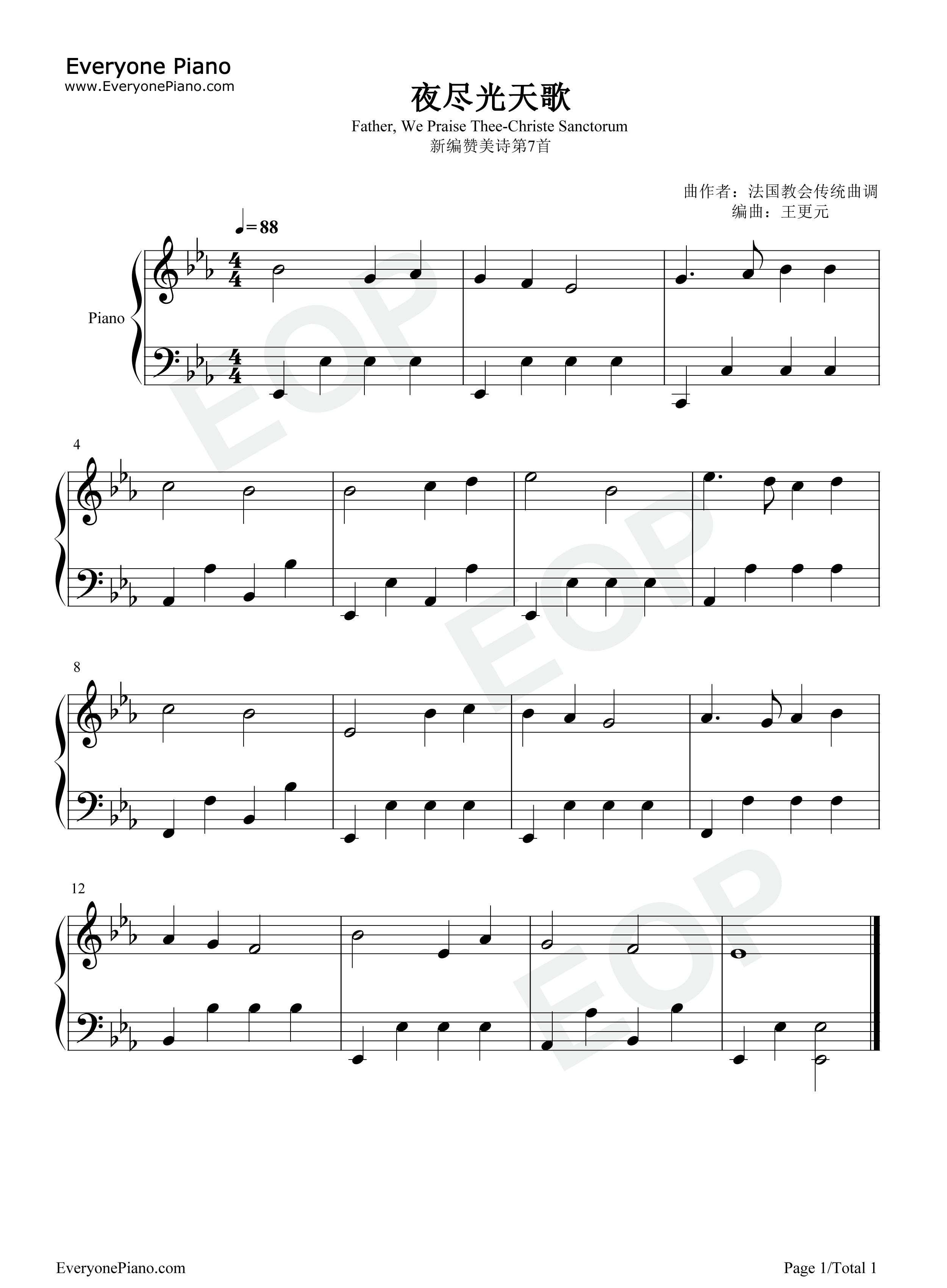当前位置:首页>娱乐>夜尽光天歌钢琴谱-法国教会传统曲调