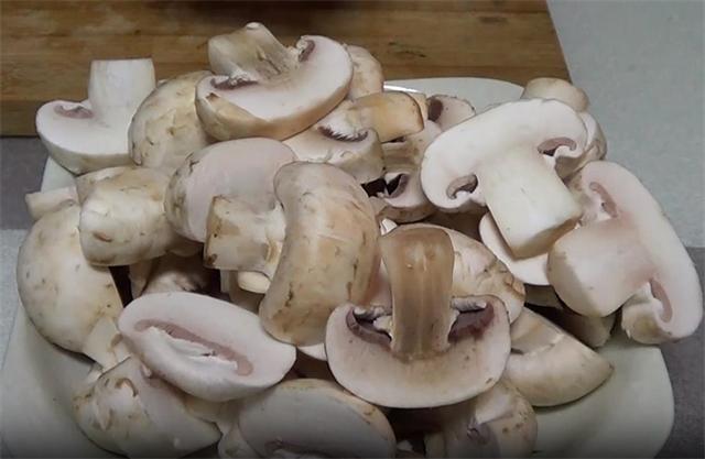 1.朋友们,大家好,今天我们来做一道素炒口蘑,做法简单,口蘑鲜滑好吃,很给力,准备洗净的口蘑一盘,改刀对切一下。