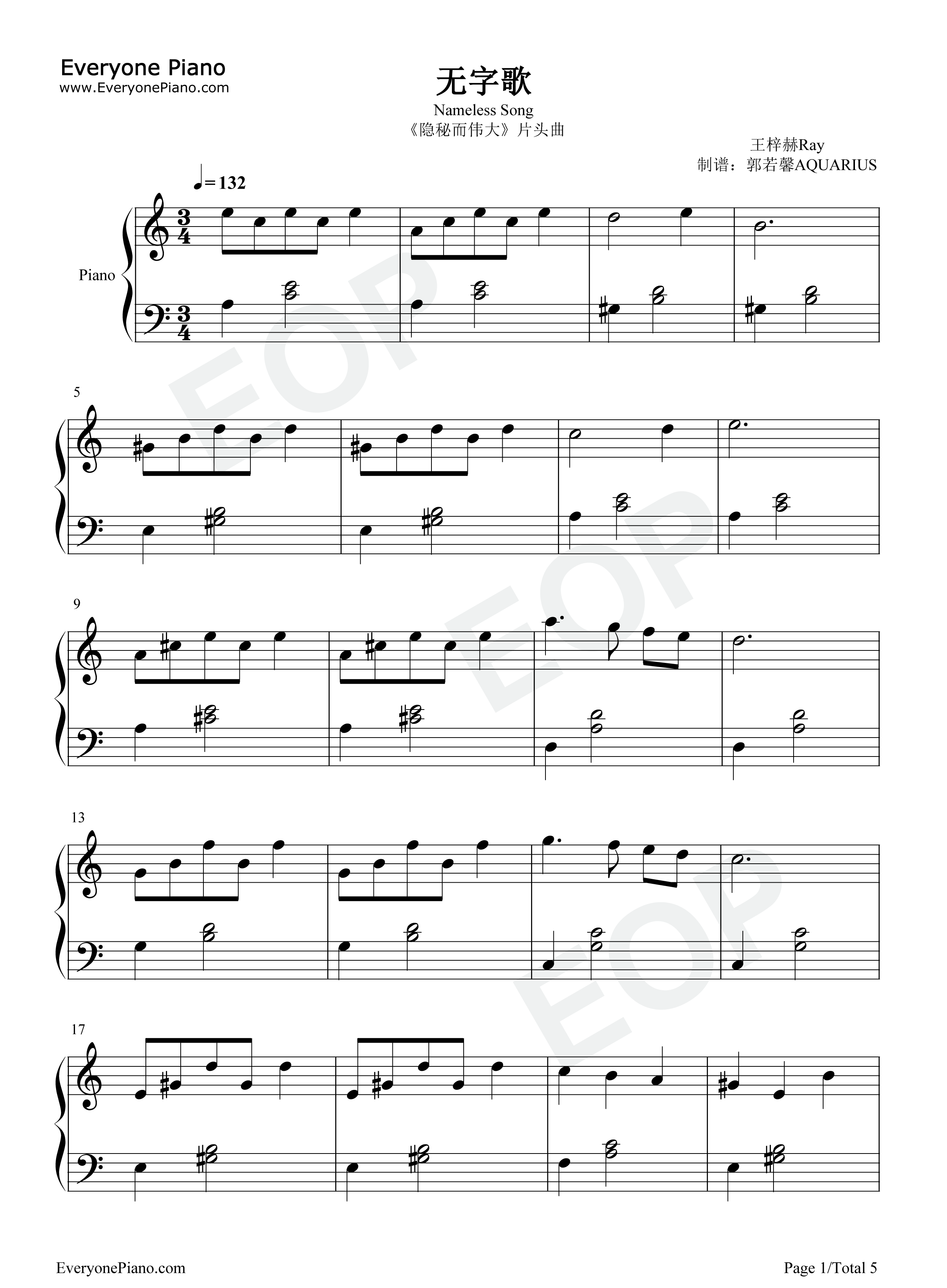 当前位置:首页>娱乐>无字歌钢琴谱-王梓赫Ray