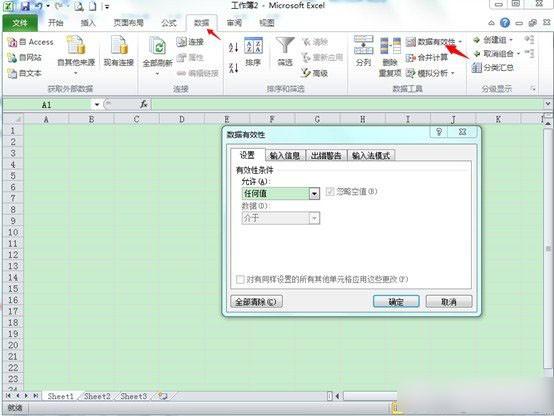第二步:在“允许”下框中选择“序列”在来源中选择制作下拉菜单的内容,比如下面图中所选的内容就是在“Sheet2表中的A1至A3”,最后点击“确定”完成下拉菜单制作。