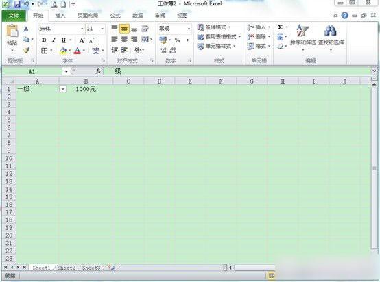 下面图例是我要向大家展示的,下拉菜单的一个小功能“选择一级时,B1单元格会出现1000元,选择二级时,B1单元格会变成800元,为了实现这个功能,前提我们还要在B1单元格录入工式。