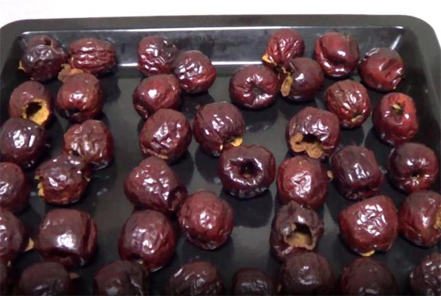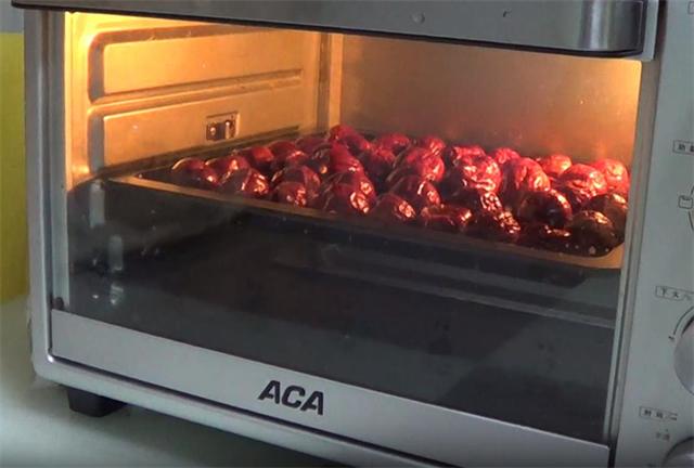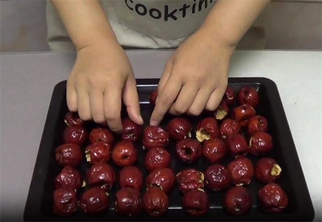 3.接着放入烤箱,上下60度烤1个小时,具体的时间根据大枣的大小和自家烤箱的温度调节,温度不要太高,防止烤糊,烤好之后,取出放凉。