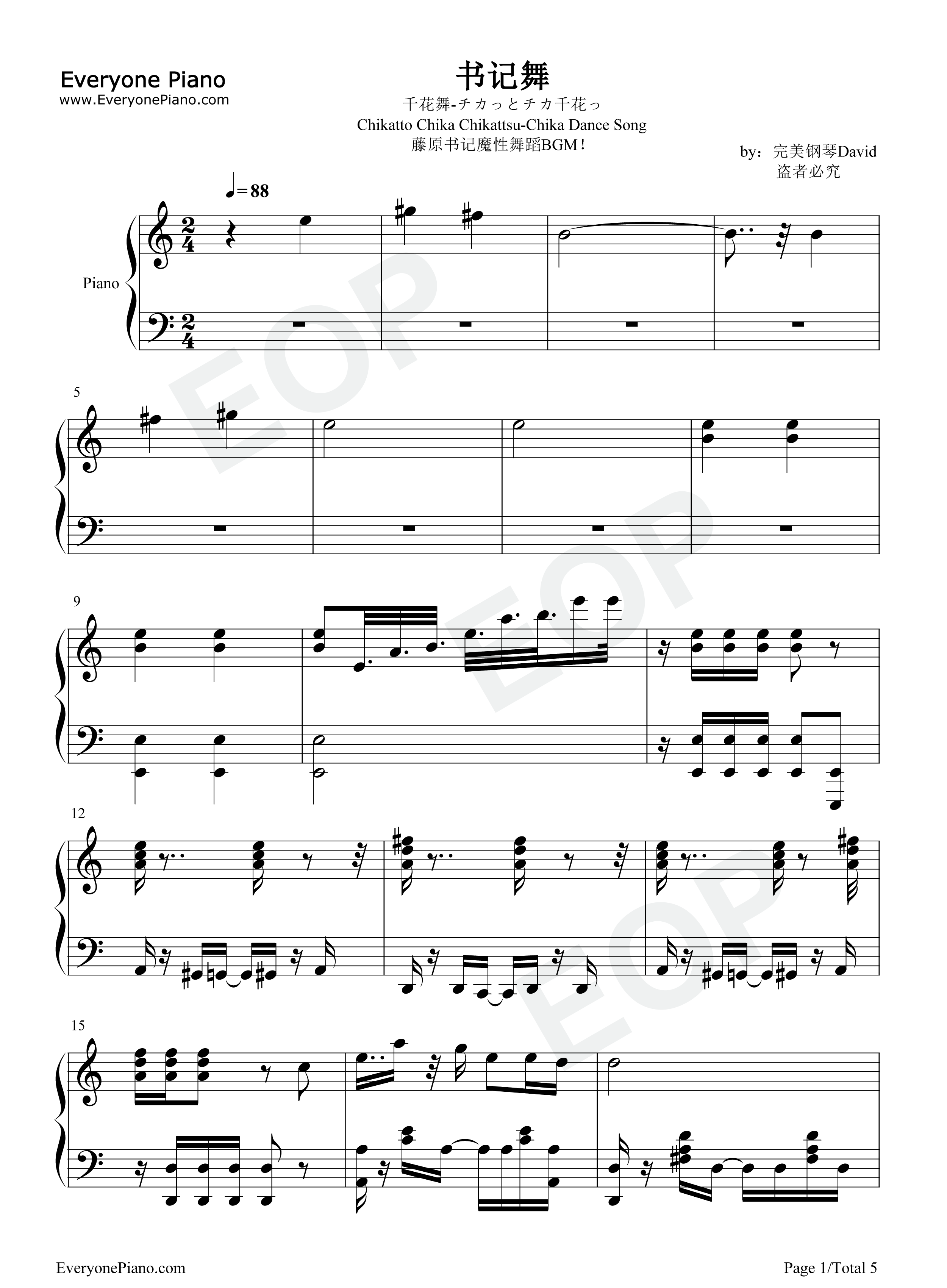 ,又名“千花舞”,日语チカっとチカ千花っ♡,来源于动画《辉夜大小姐想让我告白~天才们的恋爱头脑战~》(简称《辉夜大小姐想让我告白》),由秀知院学园学生会的书记藤原千花所跳,故因此得名。 从舞蹈动作来说,“书记舞”的翻跳难度其实并不高,即便你是一位没有舞蹈细胞的糙汉子,也能在BGM的伴随下跳出各种欢乐的魔性版本。不过,想要还原正宗的“书记舞”,在布景方面却一定要像动画那样,有挂在窗帘上的蟑螂,并如同书记藤原千花那样帅气地丢出帽子,才能让观众们留下“awsl”(即“啊我死了”)、“萌”、“魔性”、“得想办法娶了这个女人/男人”之类的弹幕。 书记舞钢琴谱由网友完美钢琴David制作,感谢完美钢琴David对EOP的支持! 书记舞歌词: よーいよーい どーんだ yo 秀知院学園 周知の事実 みんな憧れの生徒会 ポクポクポクポクポクポクポ 会長とかぐやさん 石上くんと書記のチカ ゴールデンメンバーと 思いませんか? 書記のチカ 書記のチカ ラー 乱れた国で生きる私たち 誰もが本音 隠してるけど どんな問題もラブ探偵チカが 解決するわ IQ3 でもまかせなさいー しゅきしゅき書記書記初期設定 どーん うかうかしてたらすぐ卒業 ふぅ ちゅきちゅきどきどき フォーチュンテラー いつだって誰だって 恋したらヒロイン チカラの限り輝くのだよっ チカっとチカっとチカチカっ とここで曲は間奏に入ったので 名言とか格言とか残してこう 後世に語り継がれる 名曲になりたい訳なのですが お弁当おわりの昼下がりふぁ 何かないですか? あ今すごくいいこと思いついた ってもう2番はじまっちゃいます Yo yo すたーとだ yo 大好きですから 愛してマスカラ ラーメンスイッチ バリカタ Onぐつぐつぐつぐつぐつぐぅ 醤油とんこつ バリカタ薄め あっこれうまいやつぷは完飲 こんにち殺法 殺法返し 心に秘める思いあるけど しーっ どんなトラブルも バッチリ くっきり 解決するわ ソレって何 ソ しゅきしゅき 書記書記初期設定どーん 頼られるとno言えない系yes ちゅきちゅき土器土器 ぼっけなすー いつだって 誰だって 愛したら ヒーロー チカラの限り 生きてくのだよっ チカっとチカっとチカチカっ しゅきしゅきしょきしょき ちゅきちゅきどきどき しゅきしゅきしょきしょき ちゅきちゅきどきどき 森へお帰り |
