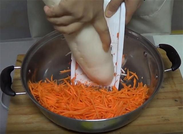 1.朋友们,大家好,今天我们来做一道萝卜素丸子,制作过程详细,非常的好吃,一口一个很给力。准备一个白萝卜,两个胡萝卜,一把香菜,然后用工具把胡萝卜和白萝卜都茬成丝。