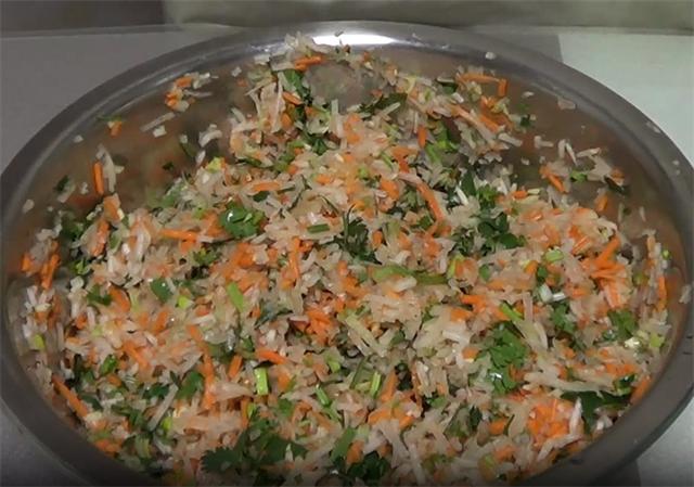 准备食材: 白萝卜、胡萝卜、香菜、葱姜蒜、盐、味精、胡椒粉、普通面粉、食用油 具体做法: