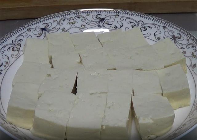 1.朋友们,大家好,今天我们做一道剁椒金针菇豆腐,香辣过瘾,豆腐嫩滑,金针菇好吃,非常棒。准备一块豆腐,一小把金针菇,剁椒酱,先把豆腐切成小方块,切好之后,铺在盘子上。