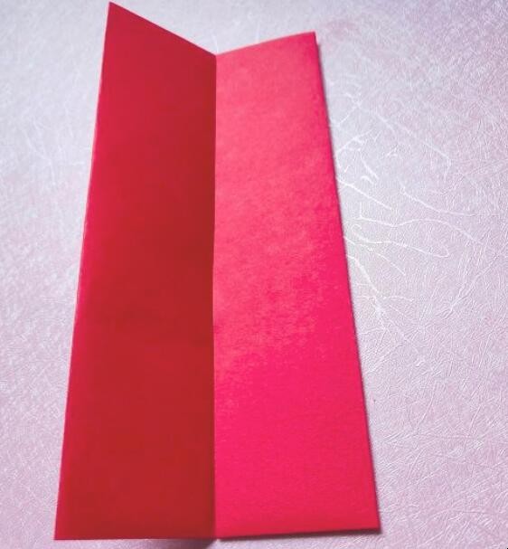 2、把彩纸左右二分之一对折,接着再四分之一对折一次。