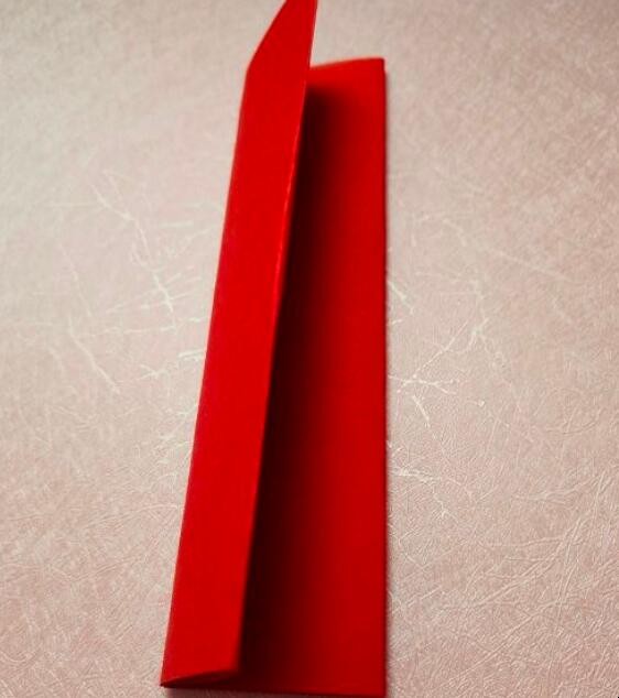3、彩纸折成一个细长的长方形之后,开口的方向朝右。(www.ws46.com)