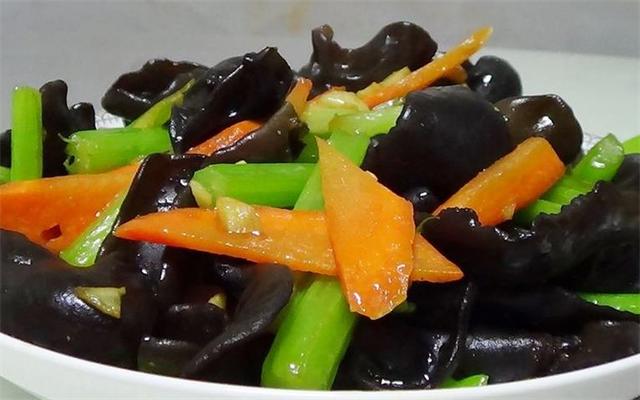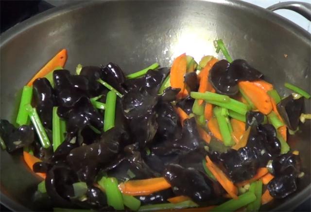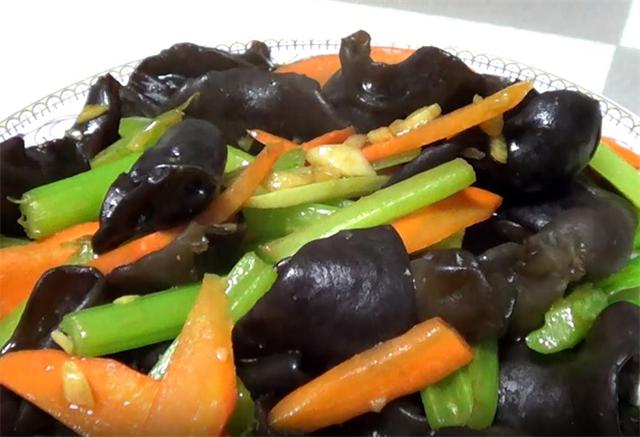 准备食材:(www.ws46.coM) 木耳、胡萝卜、芹菜、食用油、酱油、素蚝油、盐 具体做法: