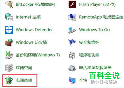 2. 进入控制面板页面后,找到电源选项,点击。