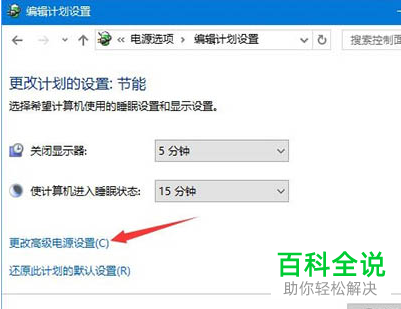 4. 接下来,在打开的页面,下方找到“更改高级电源设置”的链接,点击。