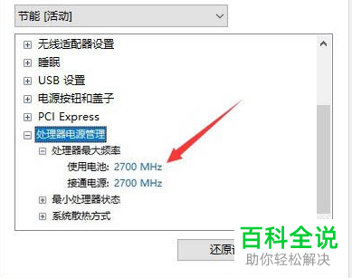 5.如图,在弹出的窗口中,展开处理器电源管理选项,然后选择下方的选择处理器最大频率90%。