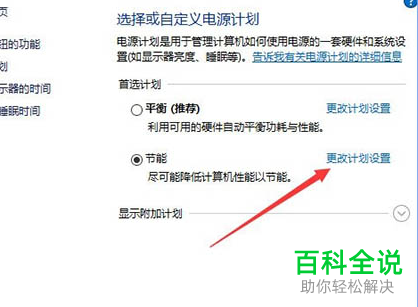 3. 然后在打开的页面右侧,首选电源计划右侧,点击“更改计划设置”选项。
