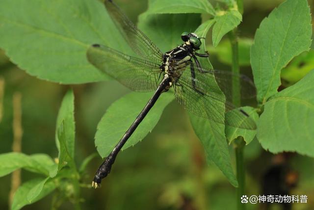 1、宽纹北箭蜓(国家二级保护动物) 宽纹北箭蜓(学名:Ophiogomphus spinicornis),又称为棘角蛇纹春蜓,是中国极为珍贵的蜻蜓品种之一。成年个体擅长飞翔,不仅具有持久的耐力进行远程飞行,而且展现出高超的飞行技巧。它们以小昆虫为主食,是捕食蚊子等昆虫的出色猎手。