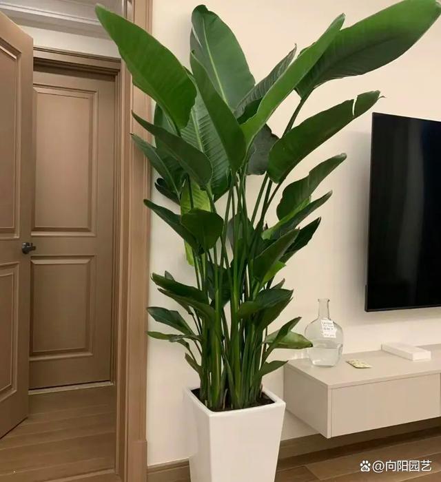 像天堂鸟和散尾葵,散尾葵就属于偏大型的绿植,高度可以长到两三米,天堂鸟长得就相对比较矮小,大概只有一米多,并且叶片的数量相对比较少,属于阔叶型植物,看起来虽然不如散尾葵更大气,实际上买回家之后养护的成活率要相对更高,叶片数量比较少,管理起来比较简单。