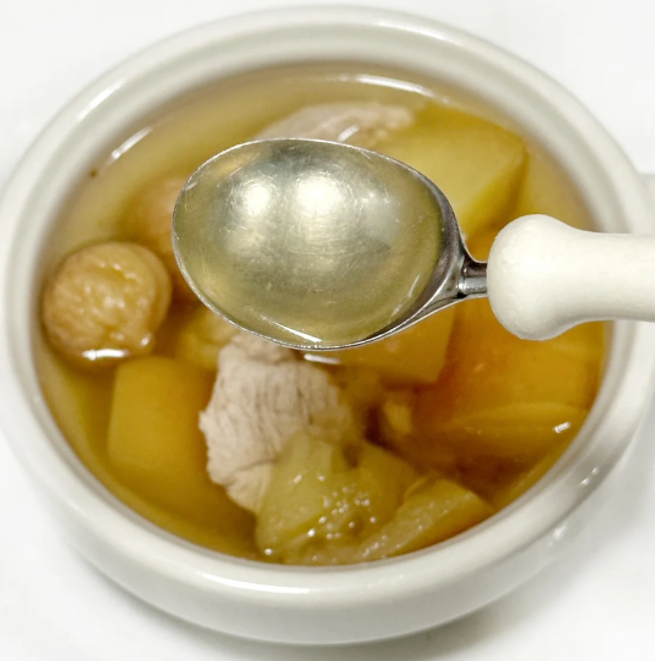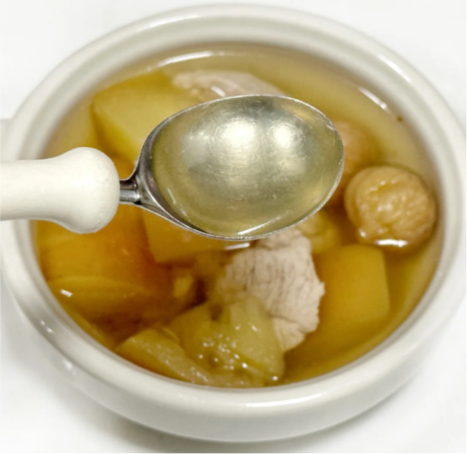 第七步:加上少许食盐和其他调味品,让汤品煮到入味,关火盛出开吃,这道苹果无花果瘦肉汤就可以食用了。