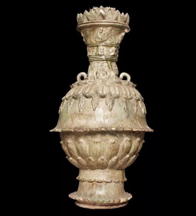 六朝时期的文人都超迷恋青色,所以最流行的瓷器就是青瓷,最著名的窑口有越窑、婺州窑,瓯窑和德清窑,不过有没有发现它们全都坐落在浙江境内,是南方青瓷的大本营,在这堆堆青瓷艺术品中,有一位明星叫做莲花尊。