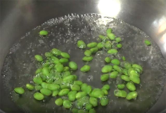3.然后起锅烧水,把青豆煮熟,开水下锅三分钟之后就可以捞出了。