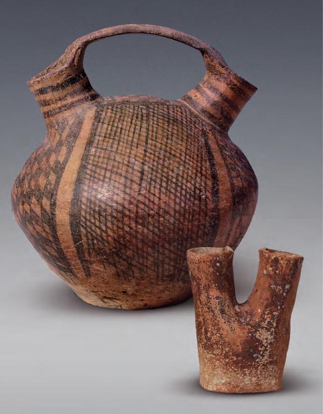 第一制作原料的不同,陶器和瓷器简单粗暴点来区分,就是一个以陶土为原料,一个以瓷土为原料,陶器的胎料是普通的黏土,颜色黄的灰的紫的红的都有,吸水性和吸附性强,加水后可塑性强,矿物成分较为复杂颗粒有大有小,常含砂粒、粉砂等极为常见,不同地域不同土层颜色形态各不相同,瓷器的胎料则是瓷土即高岭土,因早发现于我国江西省景德镇高岭村而得名,质地纯粹的瓷土带有白色丝绢般的光泽,总体追求越细腻越好,因为制作原料的不同,陶和瓷烧成后的透明度和质感也大相径庭,陶器即便坏体再薄也不易透光,如龙山文化的黑陶,薄如蛋壳却不透明,瓷器无论胎体薄厚,总给人玉质感半透明的感觉。  第二烧制温度的不同,陶土和瓷土最大的区别就是含铁量不同,陶胎含铁量较高一般在3%以上,瓷胎几乎不含铁一般在3%以下,铁元素是一个相当敏感的元素,在不同的烧制气氛下呈色会有差异,陶器的烧成温度一般在800-1100°℃,所以陶土整体呈现各种不同的颜色,总体黄褐色调,而瓷器则需要1300℃左右的高温才能烧成,有的甚至要达到1400℃才能烧成,但是总体是偏白的,一般我们看器物的底胎就能看出端倪来,鉴于这一点我们还可以从敲击声音做个粗劣区分,陶器因为烧成温度没那么高,坯体没有完全瓷化硬度不高,敲击时声音偏沉,瓷器烧成温度高瓷化明显,敲击起来声音就要清脆很多。