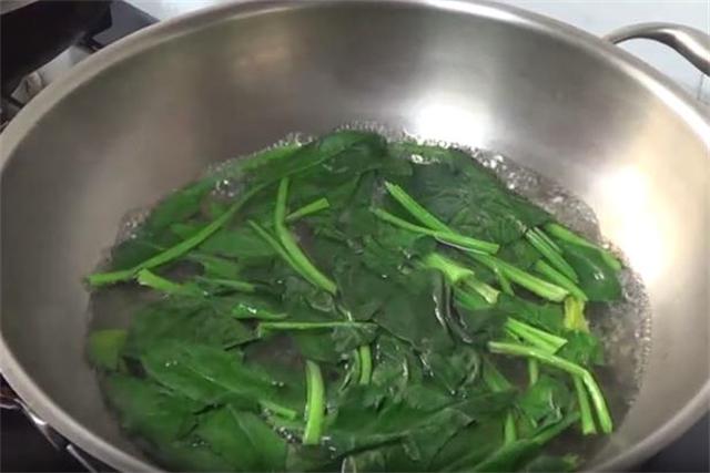 3.再把菠菜开水下锅,再次煮开后两分钟捞出,捞出之后可以过一下凉水。