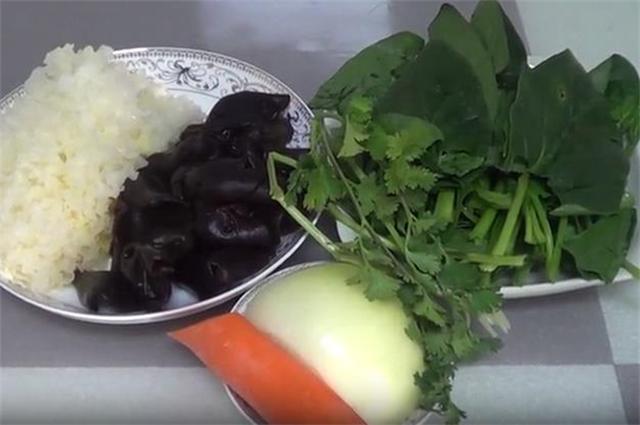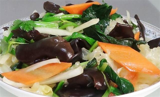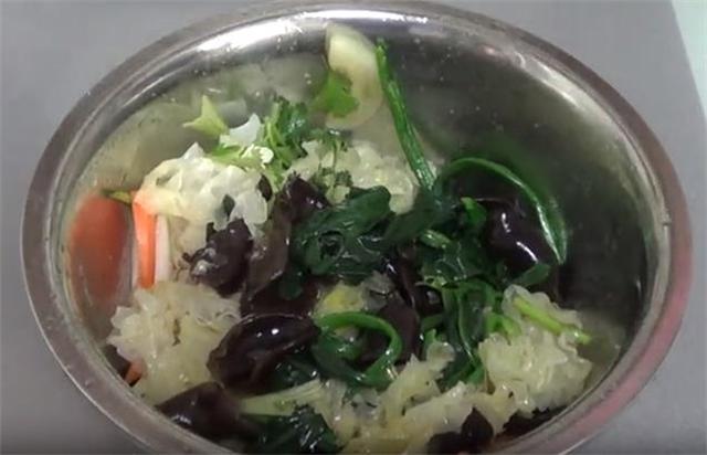 准备食材: 银耳、木耳、香菜、菠菜、胡萝卜、洋葱、盐、味精、捞汁、酱油、香油 具体做法: