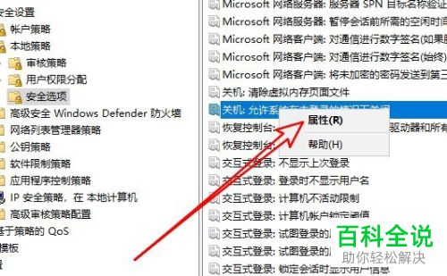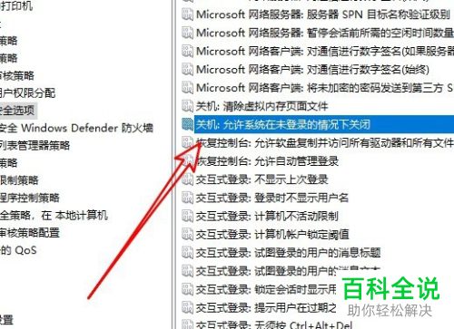 4. 在右侧打开的页面找到关机:允许系统在未登录的情况下关闭的选项