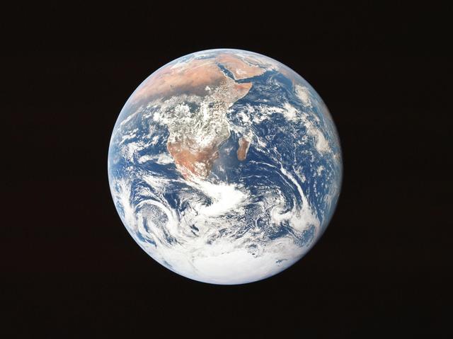 这张照片则是在月球上拍的,是目前为数不多从月球上拍摄到地球照片,此时我们距离地球38万公里,地球就是一粒悬浮在阳光中的尘埃。而我们知道的每一个人每一件事都发生在这粒尘埃上。