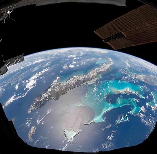 这是你在地面上看到的景象,由于高度的原因,我们此刻还无法看到地球的形状,这是空间站的宇航员们在近地轨道上拍摄的地球,此时已经能明显看出地球的曲率了,这张从2.9万公里外拍摄的地球照片被称为蓝色弹珠,算是地球的标准证件照了。