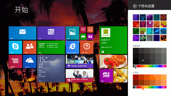 当前位置:首页>科技>Windows 8.1磁贴背景色和个性色的修改方法
