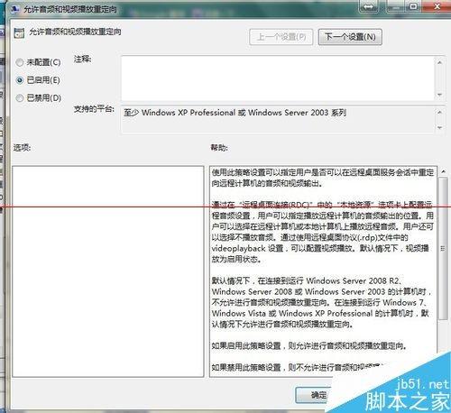 2.6找到允许音频和视频重定向,双击打开,点已启用,确定,然后重新启动系统