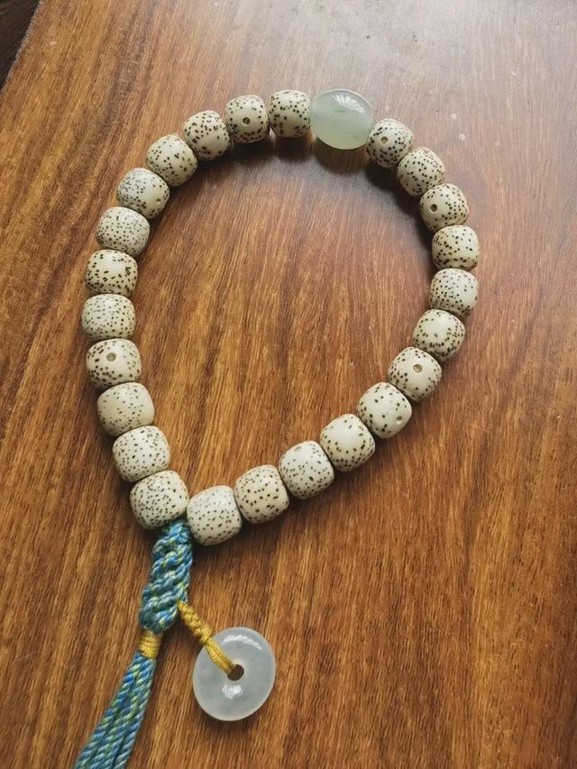 第一点就是星月菩提的原料,其实它并不是圆形的,这大家都知道,而星月的星点它是由星月的料心放射到星月表面的星线所组成的,所以要想加工一颗正圆珠,那么星线的分布不是就都改变了吗?而且咱们看一颗正圆珠基本上就是360度的星点一览无余了,不像其它珠型谁还管你孔道侧有没有连星,你们能理解吧?所以要想精挑出一条极致星点的正圆珠,在所有珠型里肯定是损耗最大的,相应的成本与价格肯定也是最高的。