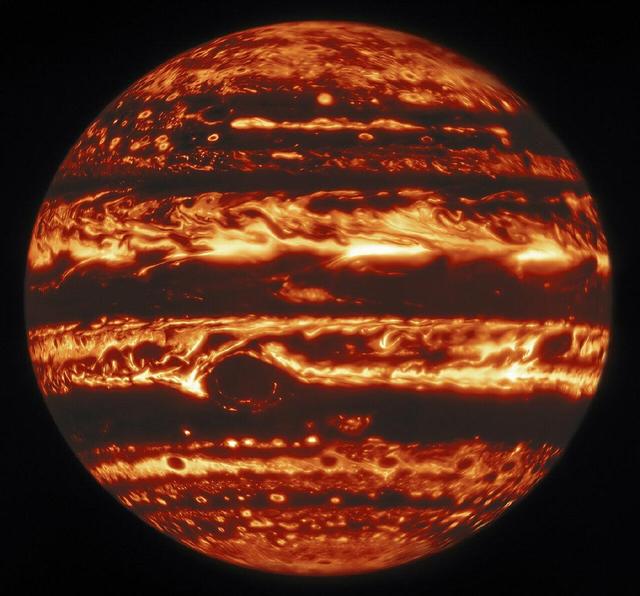 并且由于木星大气层非常厚,所以撞击产生的冲击波和羽流反弹高度达到了3000公里,远远看去就好像木星长了一根头发,至于撞击的核心区域则留下来一个堪比大红斑的黑色斑点,在随后的几个月内都清晰可见,并且还会随着木星大气层活动逐渐变化。