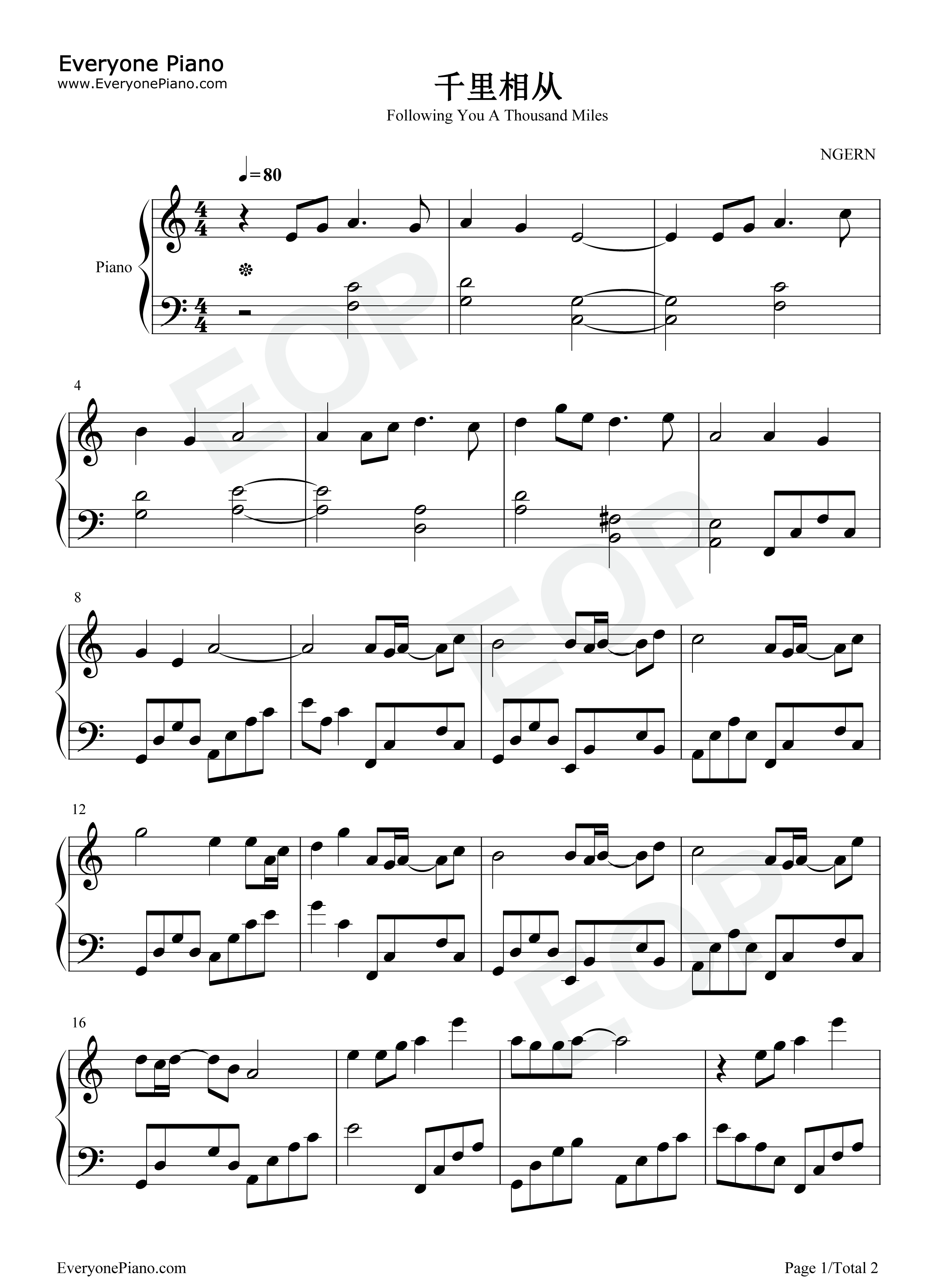 是《二哈和他的白猫师尊》的原创同人曲,由小旭音乐,柏凝和根小八共同演绎。 《二哈和他的白猫师尊》是肉包不吃肉的百万字长文。讲述了满手血腥的踏仙君墨燃重生回到了十余年前的年少时代,重历人生,发现了许多前世不曾觉察的秘密,明白了前世曾经错失的感情。最终在其师尊楚晚宁的帮助下,阻止了尘世颠覆,拔除心魔,立身为善的故事。 千里相从双手简谱是网友提供的,由网友制作,感谢NGERN对EOP的支持! 千里相从歌词: 柏凝: 掀喜帕 相拜 礼成 问天地 叩谢 相证 太荒唐 好似一场梦 独我耳目聪 根小八: 一念护 天下 一念薄 死生 道不同 各向西东 长阶血染红 情义两肩重 原是我不懂 遗恨无穷 柏凝: 南屏落雪 时光匆匆 隔世重逢 情深意浓 根小八: 先尝遍 悲欢事 再经历 苦与痛 合: 爱恨中 生死与共 根小八: 蹉跎过 前世今生 枉做个 浪子情种 等剔肉剜骨 罪还清 再与你相拥 柏凝: 北风吹衣冷 寒灯照孤城 天下性命做珍珑 灵台万人惩 少年丹心蒙 悠悠黄泉路 千里相从 柏凝: 南屏落雪 时光匆匆 隔世重逢 情深意浓 根小八: 先尝遍 悲欢事 再经历 苦与痛 合: 爱恨中 生死与共 柏凝: 南屏落雪 时光匆匆 隔世重逢 情深意浓 根小八: 先尝遍 悲欢事 再历经 苦与痛 合: 爱恨中 生死与共 |