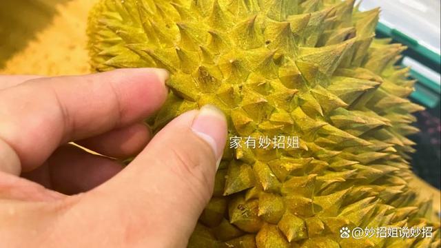 第五:尖刺疏软肉多多。 在榴莲的表皮都是有很多尖刺的,其实我们通过观察这些尖刺,就能判断榴莲的成熟度。榴莲在小的时候,这些刺就是生长在表面的,但随着生长,里面的果实涨大,这些刺也就慢慢被撑开,产生了一定的距离,并且尖刺也会变得柔软。所以,榴莲表面的刺又粗又短、较为稀疏,而且捏两个相邻的尖刺,可以轻松捏在一起的,这样的榴莲成熟度就比较高,里面果肉也很饱满。相反,那种尖刺比较密集且硬的,这样的榴莲成熟度就较差,果肉不够香甜,我们应该谨慎选择。如果今天的文章对您有帮助,那就点一个关注,点一个赞,感谢您的支持。