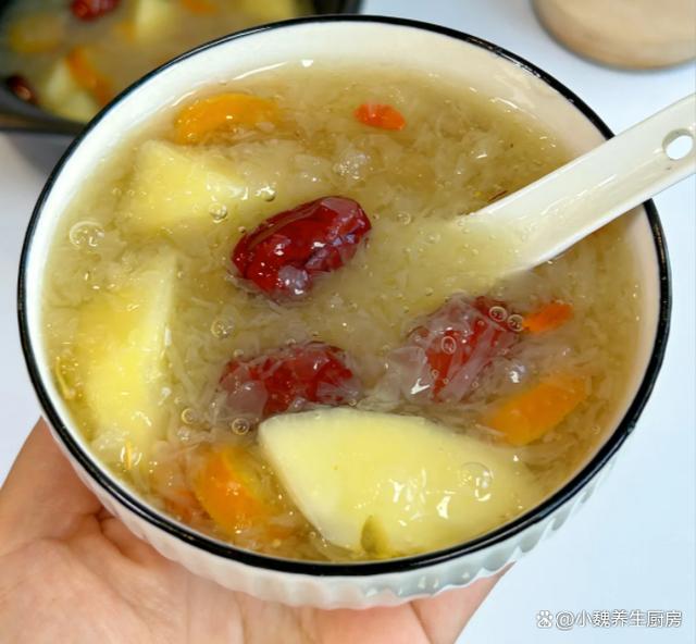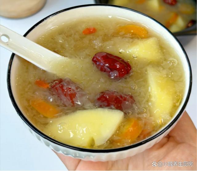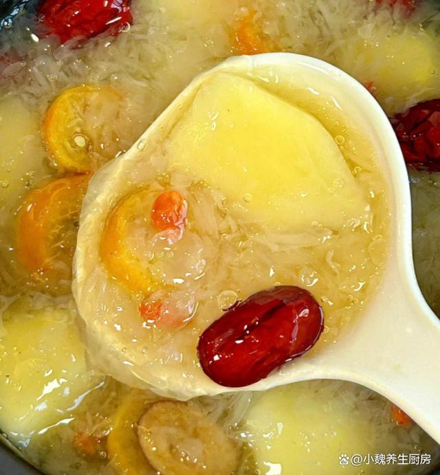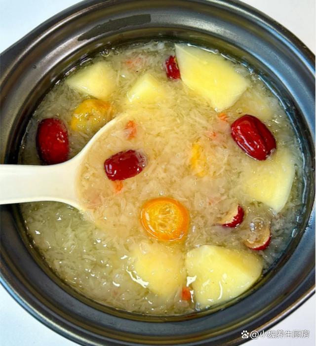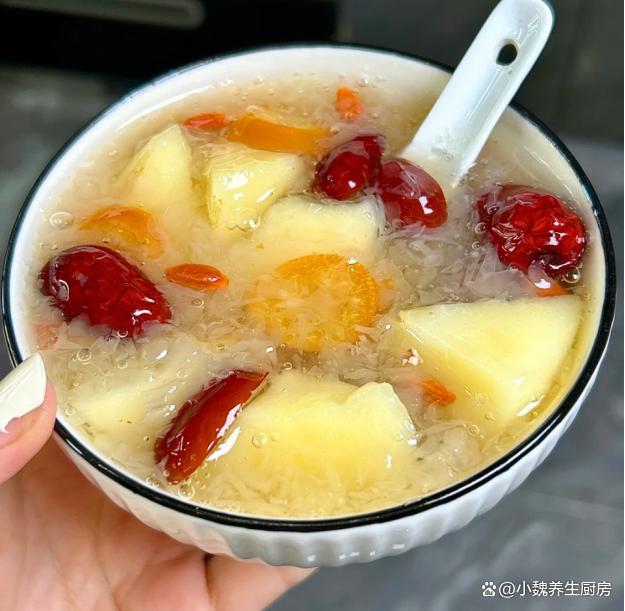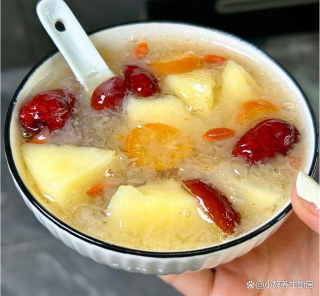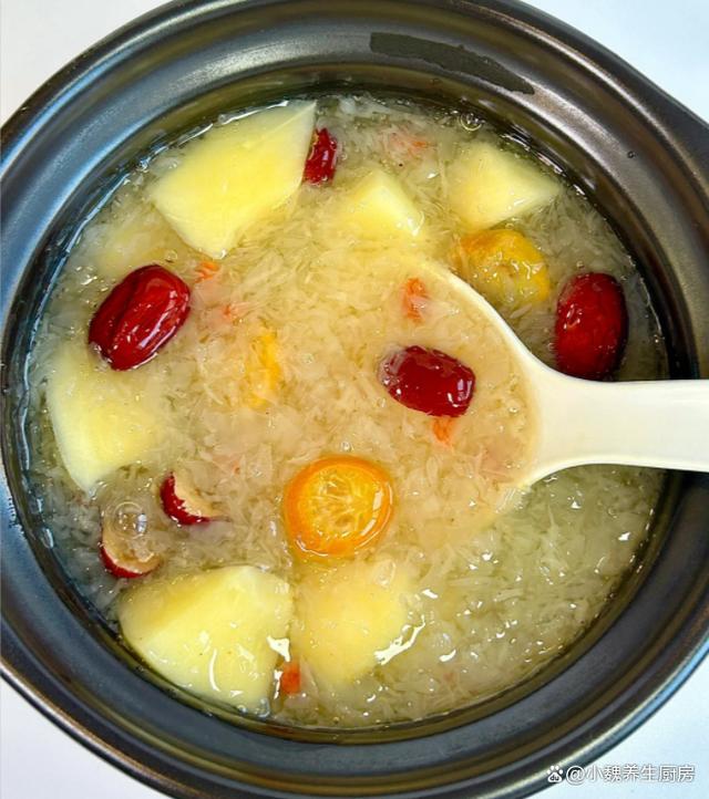 时间匆匆流逝,已经迈入秋季后期,寒露节气到来,让空气里露水很多,气候呈现迅速下降,白天和夜晚的温差特别大,尤其是夜晚非常阴凉,还有阵阵的阴风,人很容易感冒了,每年的春季和秋季都是流感高发的时候,咳嗽总是不停,这个时候不能马虎,多穿一些衣服,饮食方面要适当改变。如果上了年纪,本身抵抗力很差,很多疾病都会钻空子,体虚体弱,咳嗽久咳不止,可以给家里人尝尝这款苹果陈皮金桔银耳羹,此汤被誉为“止咳王”,隔三差五煮一锅,汤品甘甜,止咳效果很出色,赶快学起来吧。天然的“止咳方”找到了,秋季多喝这汤,止咳润肺,增强免疫。 |